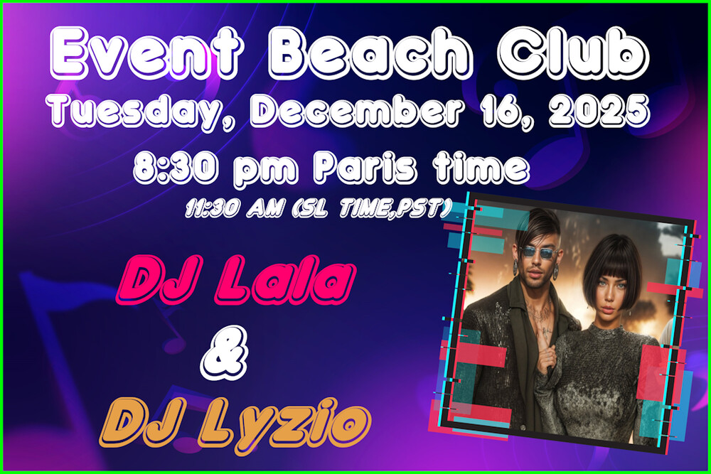 Event Beach Club @ DJ LYZIO & DJ Lalain 1 days | 2025-12-16 11:30 SLT | Event Beach Club | Added by Vlad✦Event Beach Club @ DJ LYZIO & DJ Lala