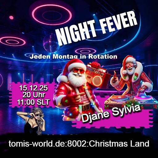*Night Fever*in 11 hours | 2025-12-15 12:00 SLT | Christmas Land | Added by Tomis WorldDie Vorfreude ist schön, euch alle bald auf unserer Fete zu seh'n. Haltet euch den Termin ja frei und kommt zur wilden Feierei