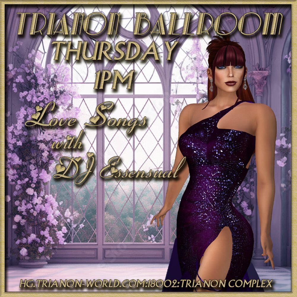 Do you love to dance to soft music, and chat with a group of friendly people or with your partner? If yes, then Trianon's Ballroom is the perfect place for you to be on Thursdays at 1:00 pm PST. The talented DJ Essensual will at 1pm playing the best love songs and your requests. Trianon offers a unique dance ball that provides a magical escape into another era, an experience found nowhere else. Dress code formal venue, hg.trianon-world.com:18002:Trianon Complex