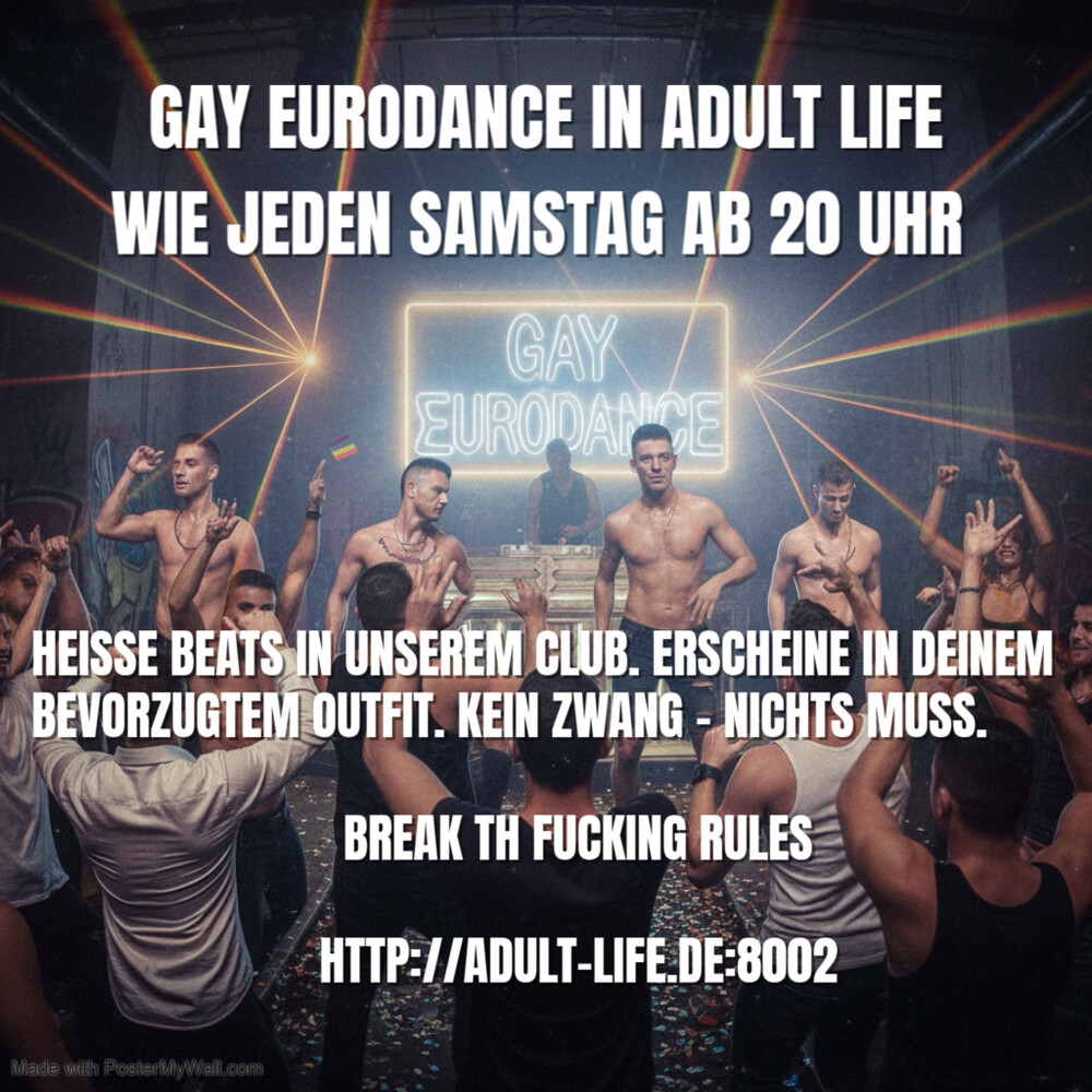 Wie jeden Samstag ab 20 Uhr GAY EURODANCE PARTY in Adult Life ALLES KANN NICHTS MUSS - BREAK THE FUCKING RULES