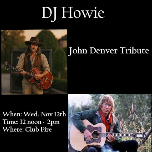 Tribute to John Denver Come hear the awesome voice of John Denver We live his pass and enjoy his music We're at Club Fire with DJ Howie