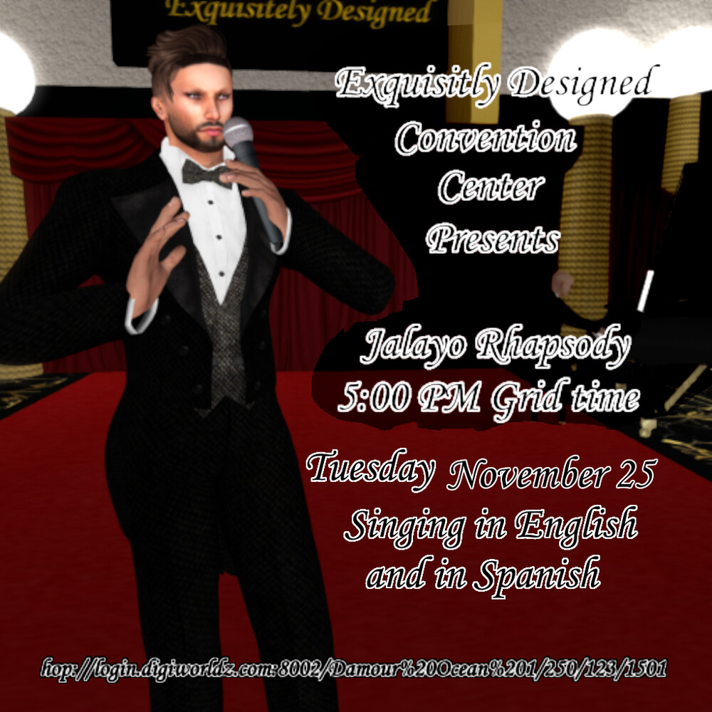 Jalayo Rhapsody is from from Peru and he sings a variety of musical genres, including rock, pop, R&B, blues, jazz, ballads, and salsa, in English, Spanish, Italian, and some Portuguese. He has been singing for over 20 years. So if you have friends that speak any of the Latin languages, bring them over to have fun with us! Formal or Semi Formal