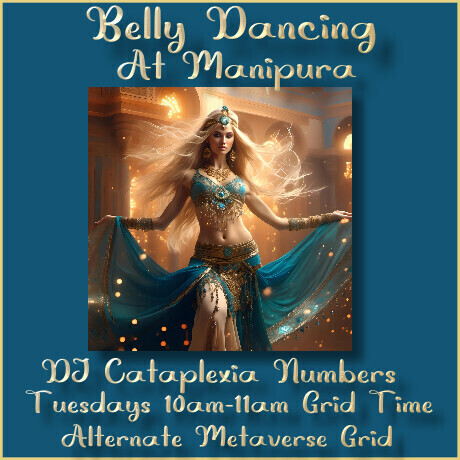 DJ Cataplexia Numbers 10am- 11a Tuesdays! Join me in Manipura, the beautiful Land Of the Golden Sun- Tribal & World beats & Sensual Eastern rhythms-All are welcome, Men & Women - Dress code silks or Warrior Kilts (men yup men do it too!). Free outfits available, come early and you will catch Cliff's Pre Show tunes!!