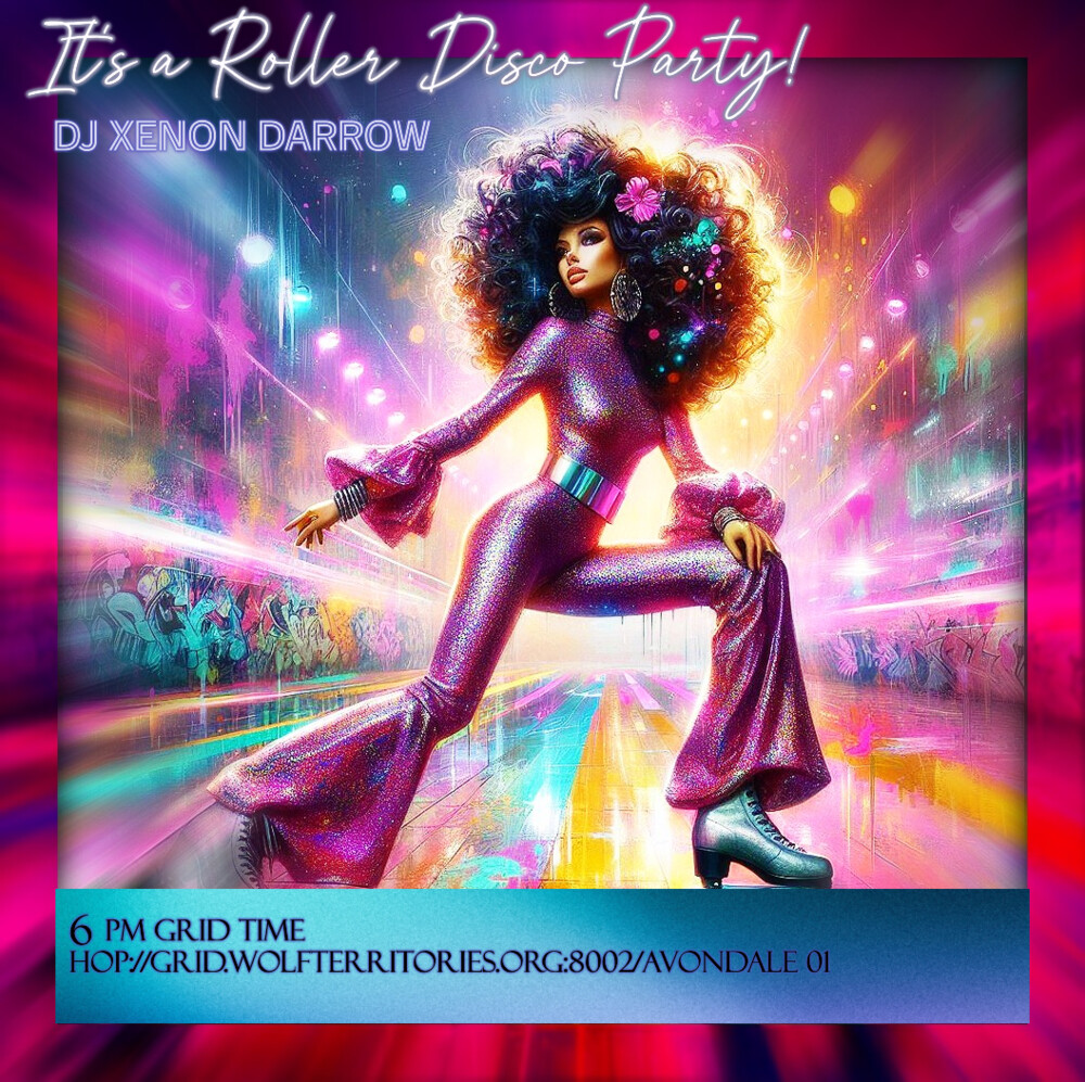 ? Dress in your wildest 70s glam — sequins, bell bottoms, flower power, and cosmic curls welcome! ? Skate to disco classics and synthwave remixes that’ll keep you spinning all night. ? Hosted in the virtual world — no gravity, no limits, just gro