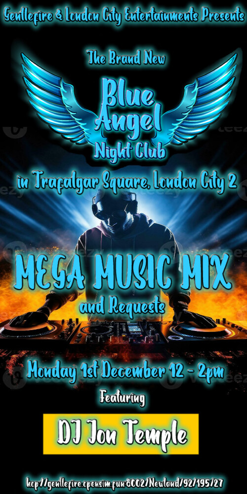 ? IMPORTANT ANNOUNCEMENT ? DJ Jon Mega Mix is LIVE at Club Blue Angel today at 12:00 Grid Time! Don’t miss the beats, the vibe, and the energy—be there or be square!