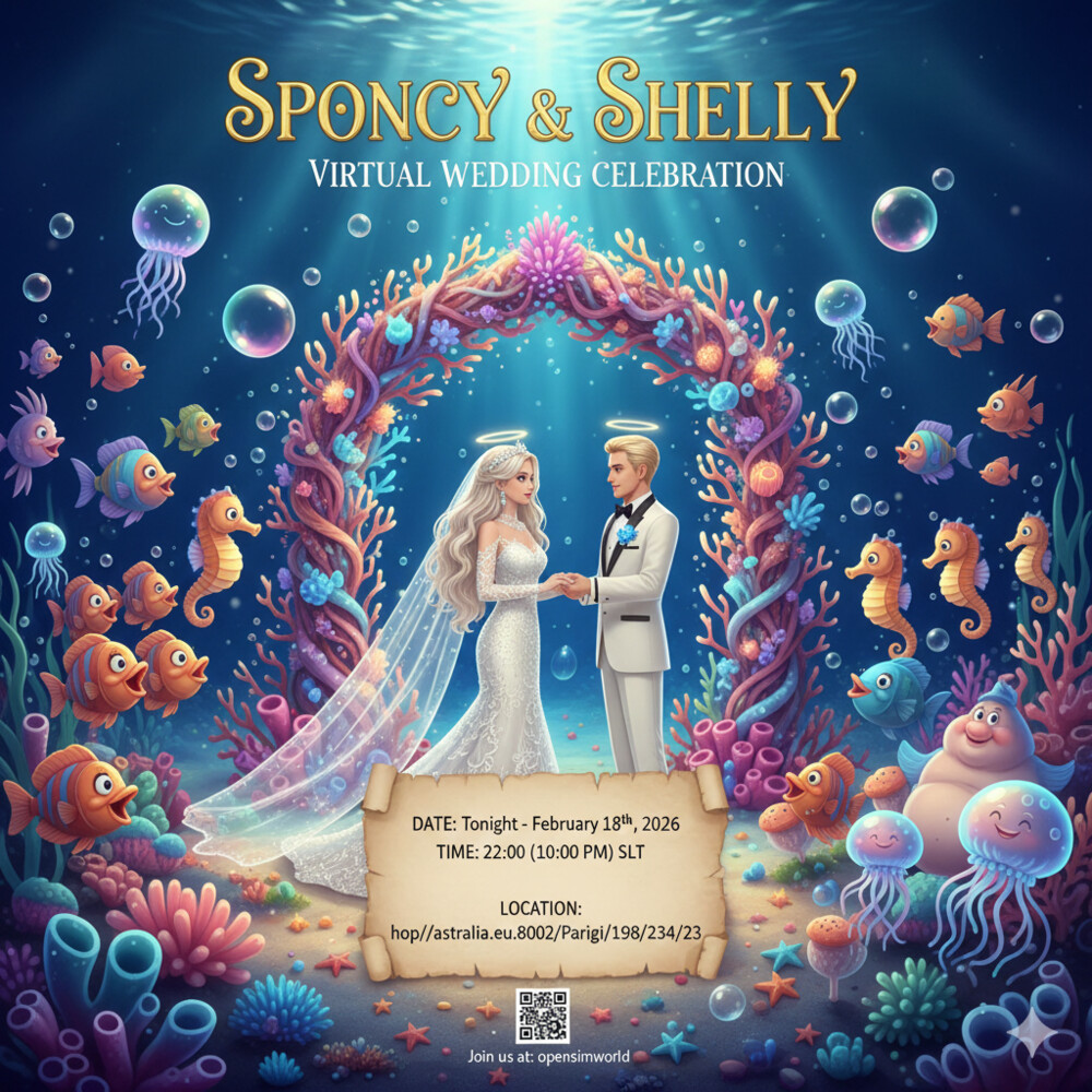 Today, February 18th, at 10:00 pm, Sponcy and Shelly's wedding will be celebrated in Paris. You are all invited. Elegant clothes.