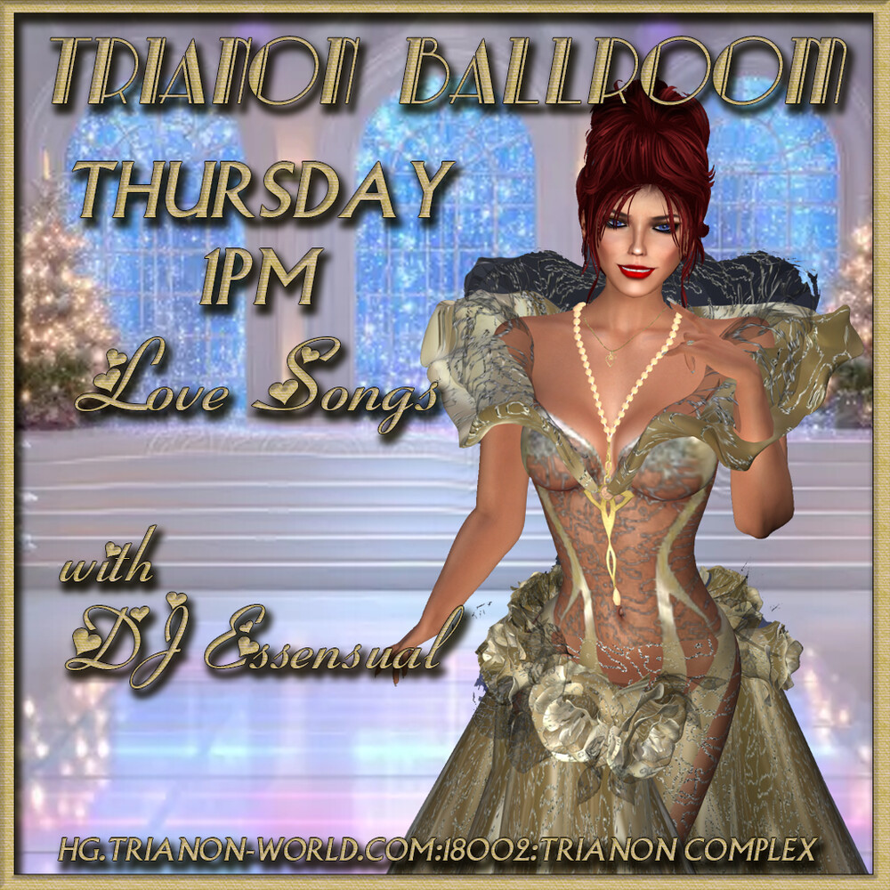 Do you love to dance to soft music, and chat with a group of friendly people or with your partner? If yes, then Trianon's Ballroom is the perfect place for you to be on Thursdays at 1:00 pm PST. The talented DJ Essensual spins beloved ballads and timeless love songs. Trianon offers a unique dance-ball that provides a magical escape into another era, an experience found nowhere else. Dress in your finest attire for this formal venue, and prepare to be transported. You can join us.