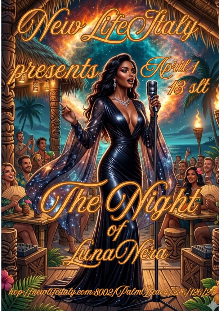 lasciatevi coccolare dalla grande voce , profonda e sensuale di Luna Nera in un ' atmosfera affascinante .....questa sera vi aspettiamo su Palm Beach, un ambiente unico di Newlifeitaly, alle ore 13.00 S.L.T.