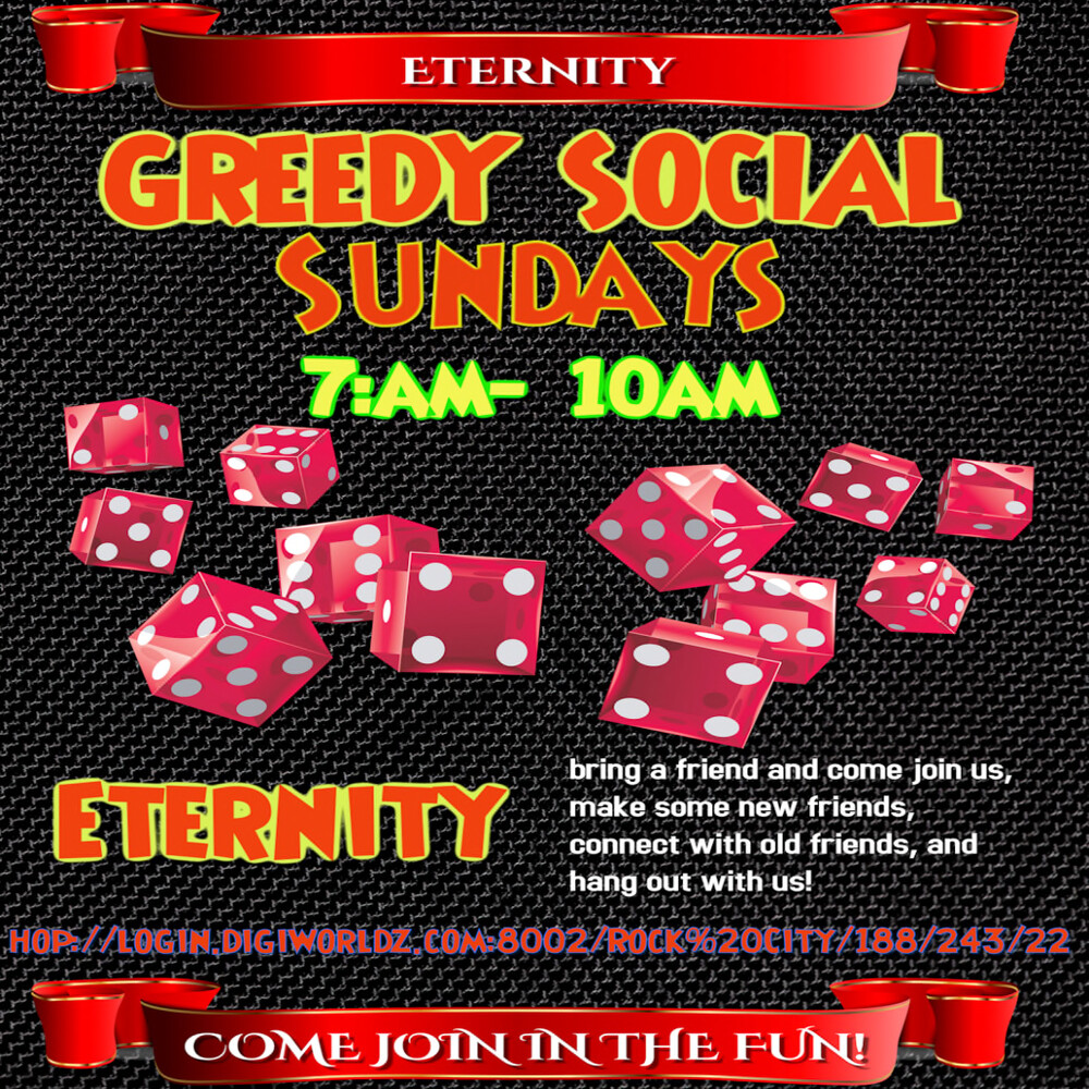 SUNDAY Morning GREEDY Social at the Eternity COFFEE Shopin 8 days | 2026-01-11 07:00 SLT | Rock City | Added by Trynatie MasonGreedy/Coffee Social - Voice Chat enabled!