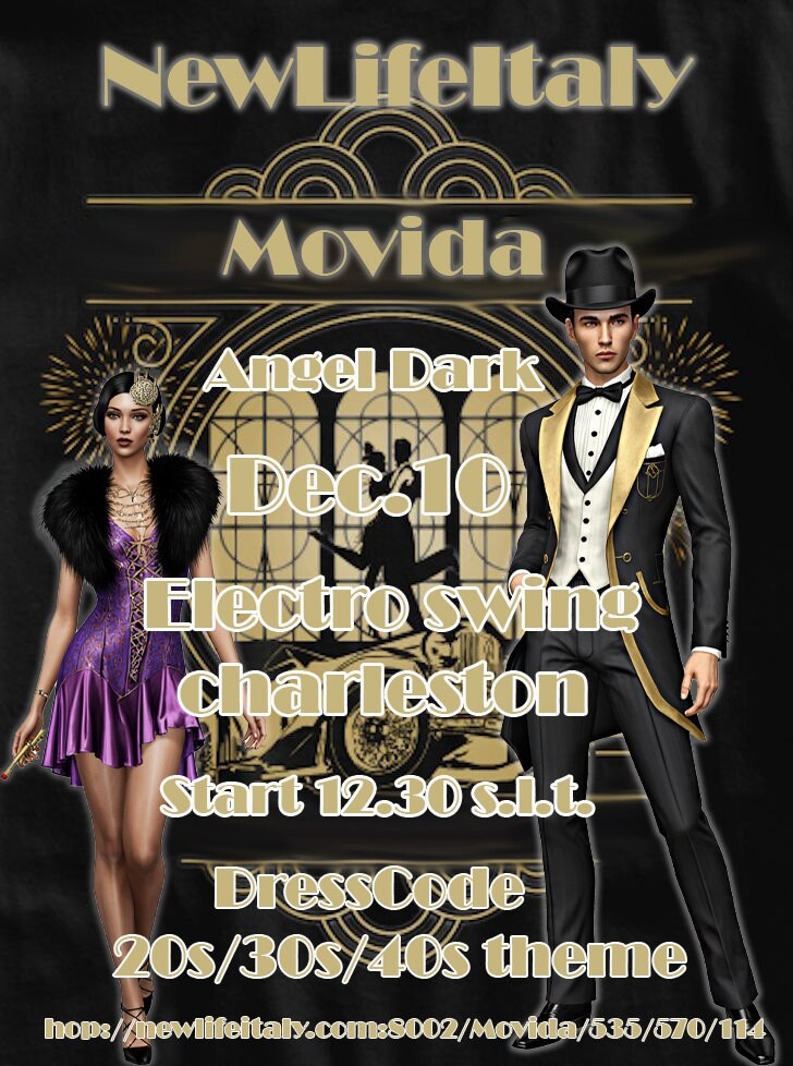 Date: Wednesday, December 10th Time: 12:30 (OpenSim) DJ: Angel Dark Location: MOVIDA Dress Code: Themed outfit You will find several ready to wear OUTFITS directly at the event location! Get ready for a charming, elegant, and emotionally rich vintage musical experience. Don’t miss it… time is wa 0 comments |