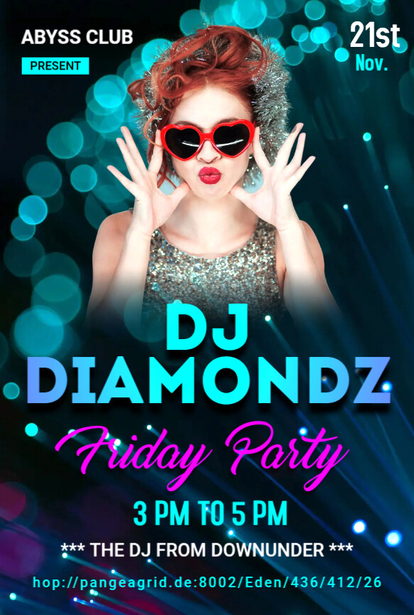 DJ Diamondz @ Abyss Clubin 6 days | 2025-11-21 16:00 SLT | Eden | Added by Andremus MiklosHailing from Australia, DJ Diamondz has been spinning tracks for over 5 years. She has performed at clubs in SL and on different grids.