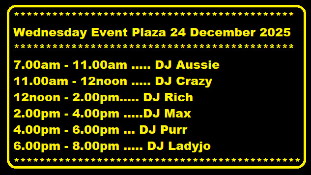 Wednesay Event Plaza Osgridin 29 minutes | 2025-12-24 08:00 SLT | Event Plaza | Added by OSgrid.org✦0 comments |