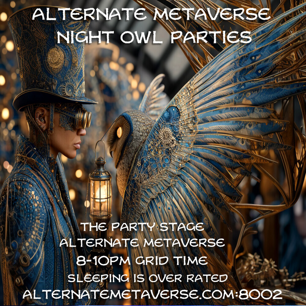 DJ Alam at The Night Owls Party@The Party Stage~Alternate Metaversein 1 days | 2025-12-17 20:00 SLT | Alternate Metaverse | Added by Cataplexia Numbers✦Join us for an unforgettable session at the New Landing Point in Alternate Metaverse Grid!