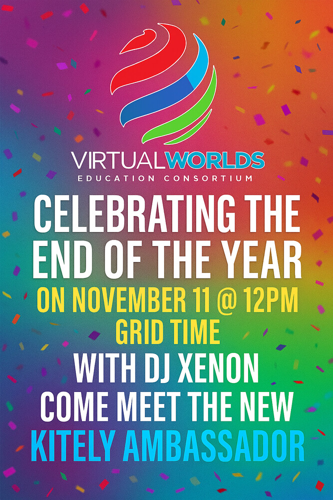 VWEC Closing Party: Let’s Wrap Up the Year in Style! ?in 10 days | 2025-11-11 12:00 SLT | VWEC | Added by Xenon Darrow✦Join us as the Virtual Worlds Education Consortium (VWEC) celebrates another amazing year of creativity, collaboration, and innovation in virtual education!