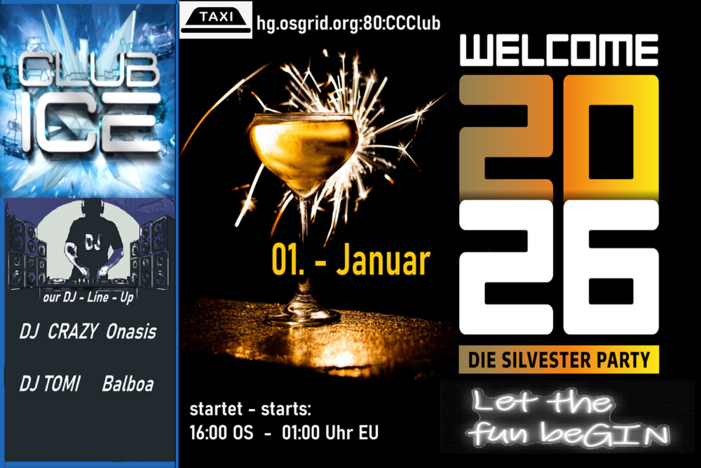 ▶▷▶ Welcome 2026 Party Thursday/Donnerstag 01.January 2026 ◕ starts 16:00 OS grid time – startet ab 1:00 Uhr EU DJ CRAZY Onasis DJ TOMI Balboa We cordially invite you to ring in the new year 2026 in an unforgettable club atmosphere. At CLUB ICE, we'll be popping the corks and pumping the bass. We'll be serving up the hottest tracks from pop, dance, urban, and electro – the perfect mix for a night of dancing. Celebrate a fresh start to the new year 0 comments |