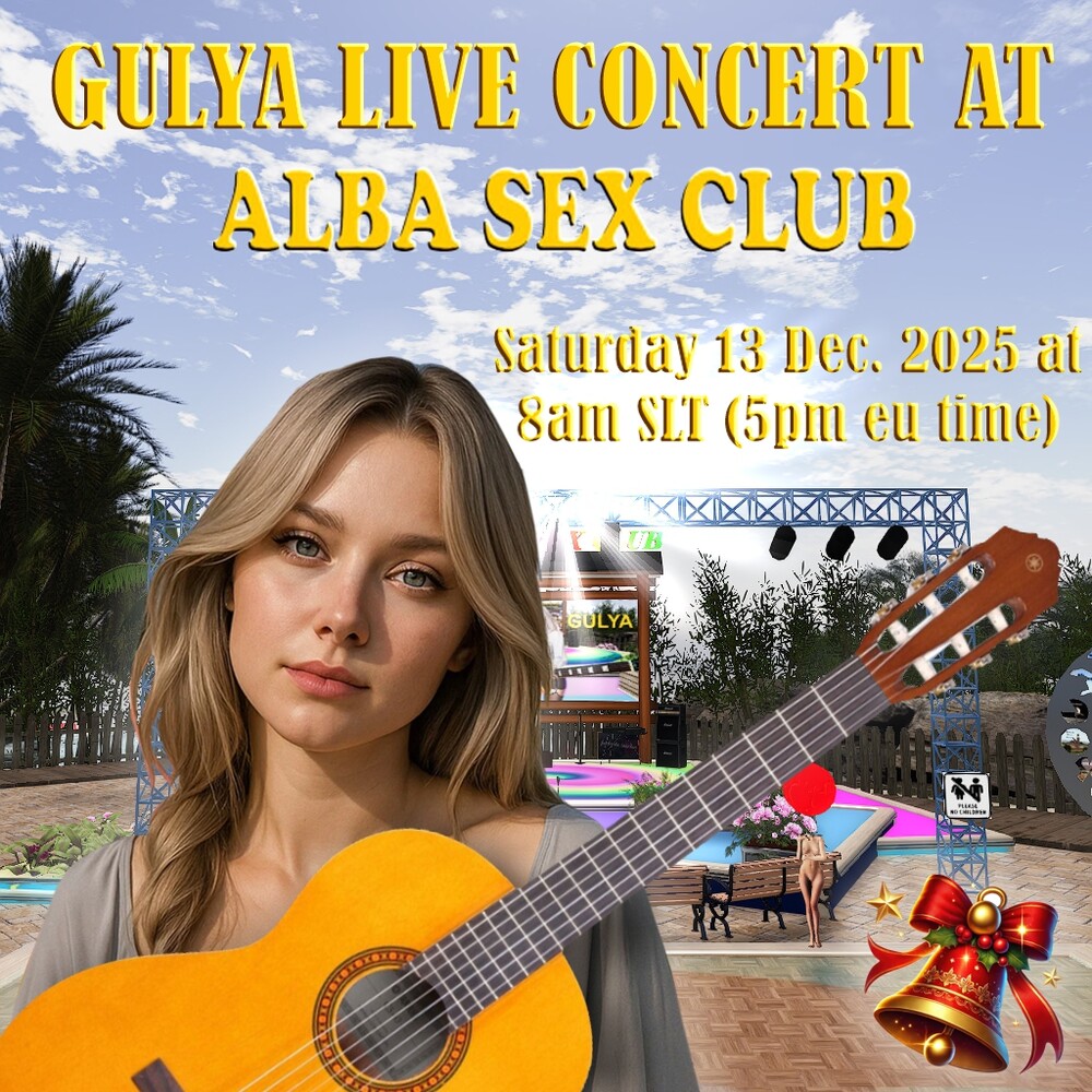 It's a case of "by popular demand" our Sympathy Winner Gulya Gulnara at our Profile Photo Contest will perform again at our Club on Saturday 13th December at 8am SLT (5pm Europe time) with her repertoire of beautiful songs. Come with your friends in our ALBA SEX CLUB plaza and let's enjoy together. hg.osgrid.org:80:ALBA SEX CLUB alba princess 0 comments |