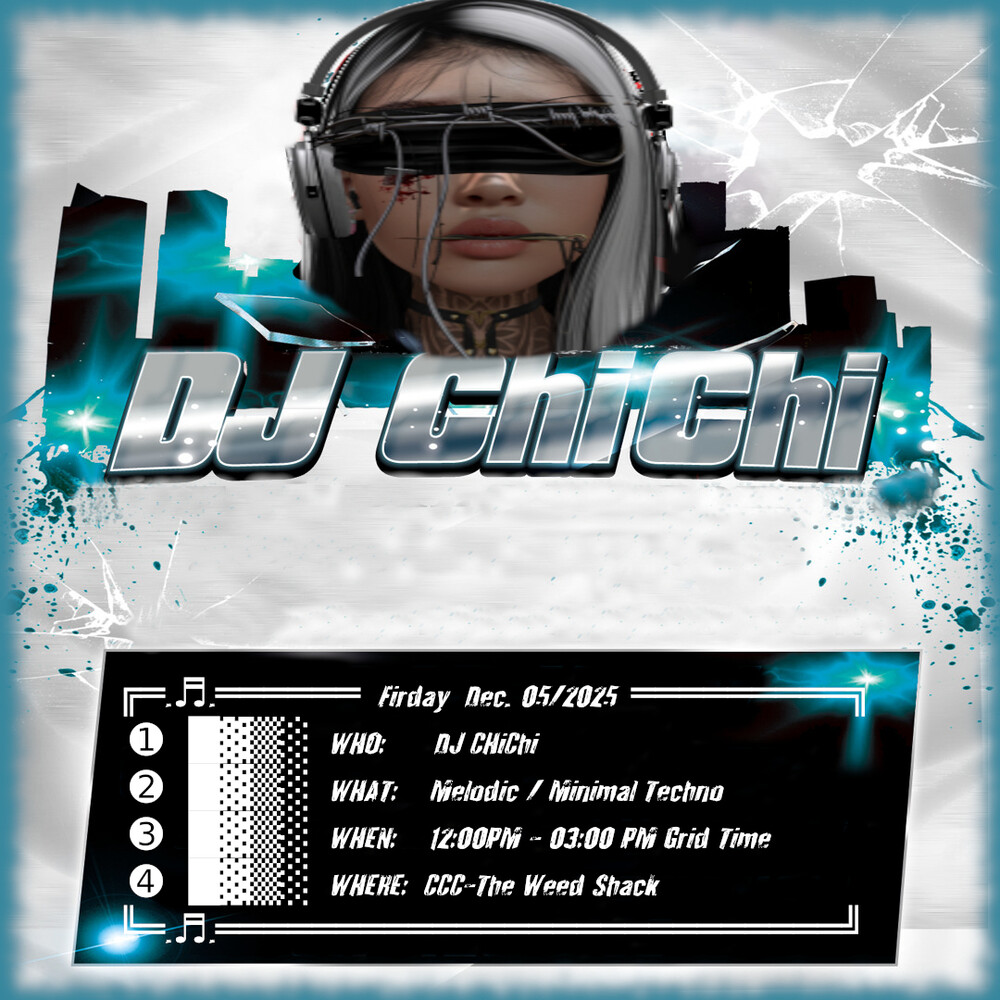 let`s do it againin 1 days | 2025-12-05 12:00 SLT | CCC2 | Added by ChiChi CuteyThe first party was a huge success and so much fun! So let's do it again and make it amazing once more!! The Weed Shack is calling you back to the dance floor. It starts at 12pm Grid Time with DJ ChiChi playing melodic and minimal techno tunes.