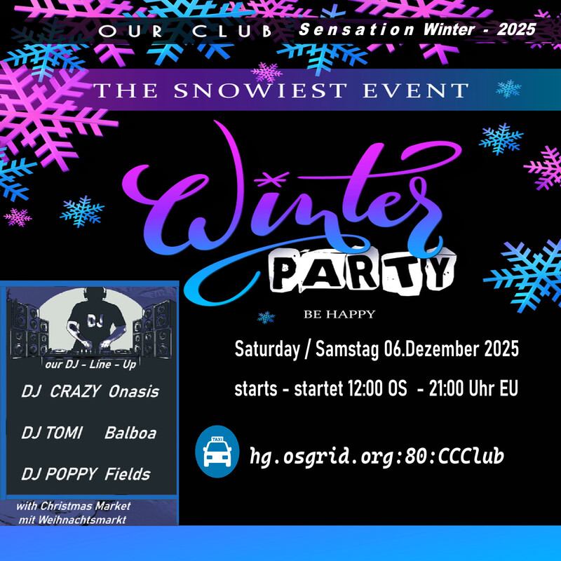 Stop by and Vibe with Great music and Fun Talkative Wild Group ¸.•**•.¸¸.•**•.¸¸.•**•.¸ What - Saturday Party When - 12-6-25 12pm-2pm Who - DJ Light Music - Deep House/House Where - Club Dope ¸.•**•.¸¸.•**•.¸¸.•**•.¸ hop://login.osgrid.org/Club/136/129/22 0 comments |