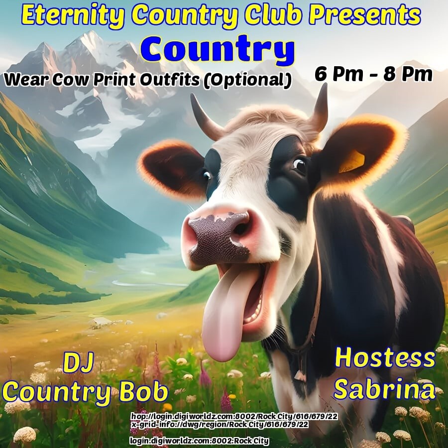 DJ Country Bob and Hostess Sabrina at the Eternity Night Club COUNTRY Venue!in 5 days | 2025-11-13 18:00 SLT | Rock City | Added by Trynatie Mason*6-8PM OST Grid Time! - Ready For Some Fun? Join Us! - THEME: Cowprint Outfits - Music: Country - Bull Rides for a Prize *GUARANTEED A GOOD TIME, CYA THERE!