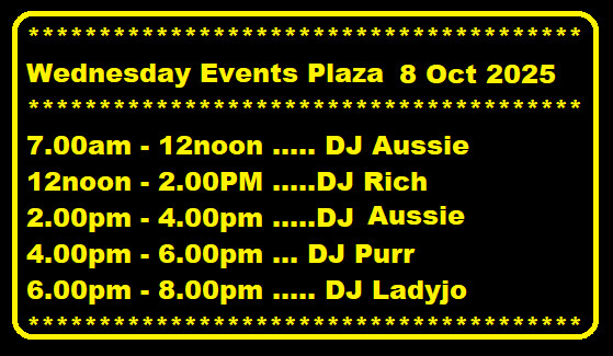 Wednesday Event Plaza OsgridEvent Plaza in 19 hours | 2025-10-08 19:00 SLT0 0 |