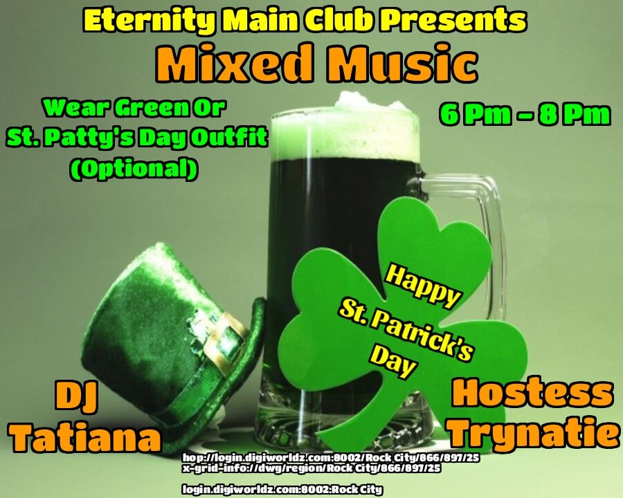 Eternity Night Club Is Located in DIGIWORLDZ (GUARANTED A GOOD TIME) 13 Venues We Rotate around for events, we are Open Monday - Friday 6-8PM OST, Eternity Has the Best LIVE Performers, DJs & Hostess's in Opensim, always something different, come see Us :) There Is More Here to explore for Hours, Greedy Every Sunday 7am-10am, Come Look Around Bring Up The Map And LOOK at all there is to see.