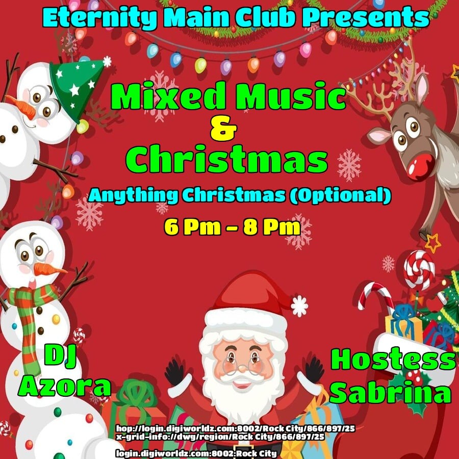 Eternity Night Club Is Located in DIGIWORLDZ (GUARANTED A GOOD TIME) 13 Venues We Rotate around for events, we are Open Monday - Friday 6-8PM OST, Eternity Has the Best LIVE Performers, DJs & Hostess's in Opensim, always something different, come see Us :) There Is More Here to explore for Hours, Greedy Every Sunday 7am-10am, Come Look Around Bring Up The Map And LOOK at all there is to see.
