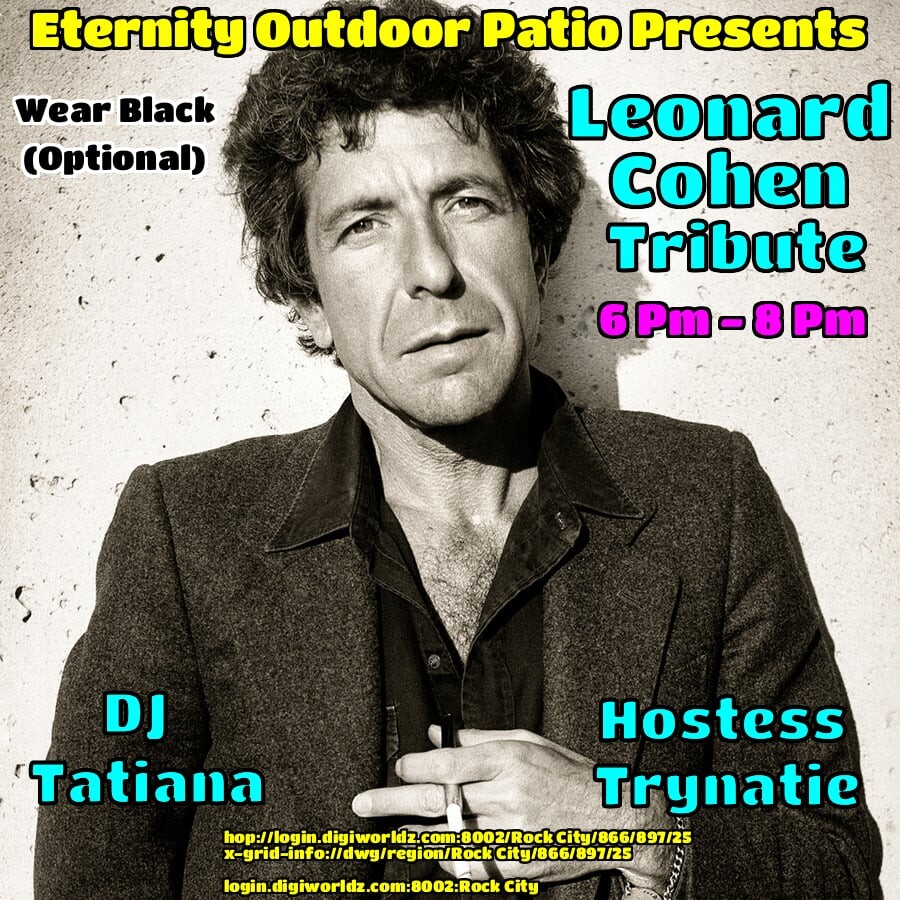![]() DJ Tatiana Volare and Hostess Trynatie Mason at the Eternity PATIO Venue! Leonard Cohen TRIBUTE!