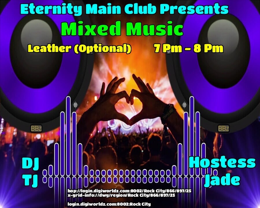 6PM - 8PM DIGI Time At Eternity Night Club - MAIN With DJ Trynatie And Hostess Erdette ! Music: ReMix And Mashups - Dress Up CRAZY Hair ( ALWAYS OPTIONAL ) *COME JOIN US FOR LOADS OF FUN AND LAUGHTER. MEET NEW FRIENDS AND CATCH UP WITH OLD ONES, TOO. CYA There! *Raffle Is Brought To You By LL Designs And Elizas A 250 D Shopping Voucher , Sponsor (Loriann Lamore) , Free to One Lucky Winner - HG FRIENDLY!