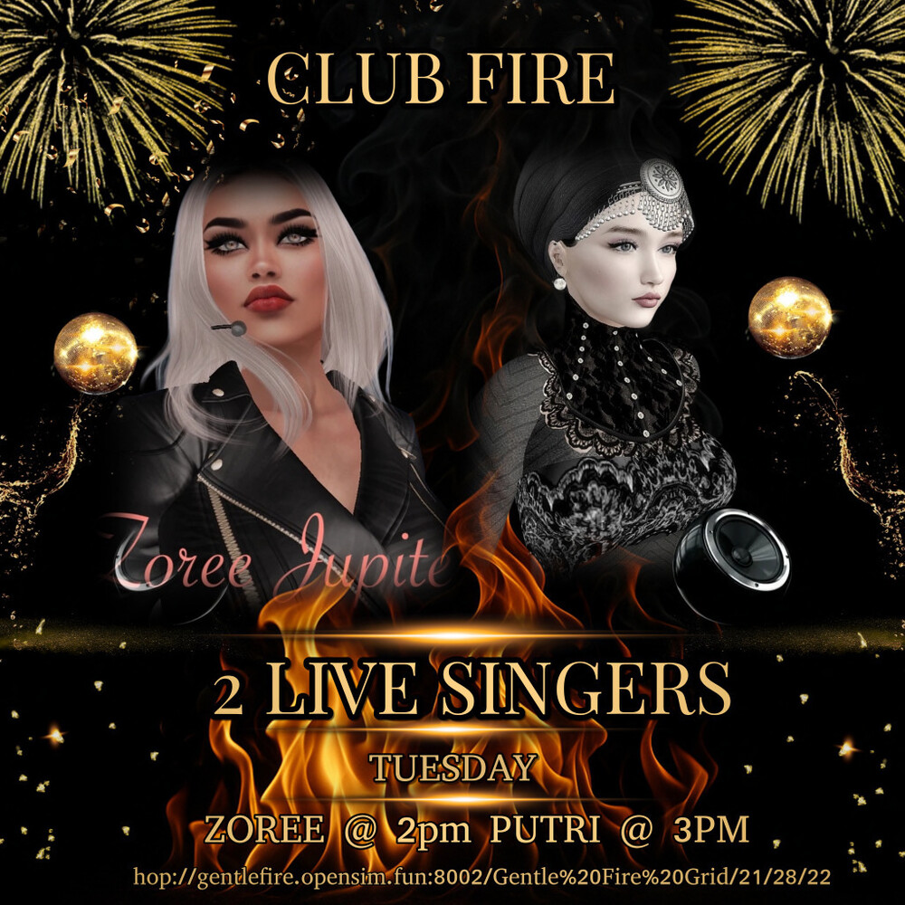 where at club Majestic at Gentle Fire time 2:00pm to 3 : 00 pm Grid time hop://login.osgrid.org/Gentle%20Fire/196/388/22
