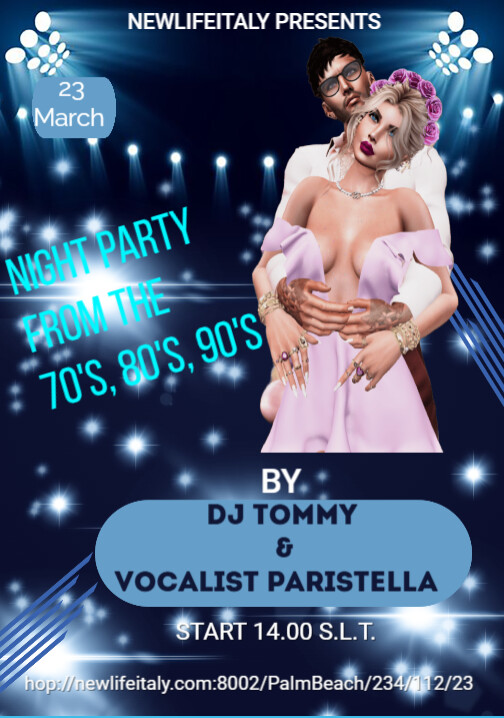 Do you want to spend a 70s evening with our DJ Adry? hurry up with a nice themed dress and have fun with us......we are waiting for you on newlifeitaly...!!!!!!