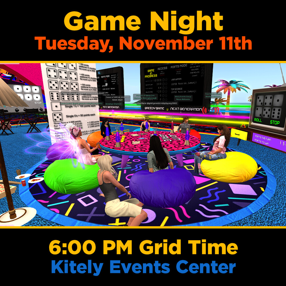 • Second Tuesday: Game night at Kitely Events Center - 6:00 PM