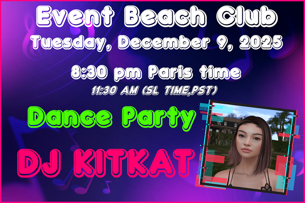 Dance Party every Tuesday evening from 8:30 p.m. to 11:30 p.m. Paris time. A different DJ for each party.