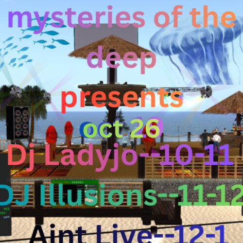 @ /¯ Who : DJ LADYJO----3-5 : AINT LIVE----5-6 : _/¯ ¯ Where : mysteries of the deep blue ocean /\ When : starting at 3pm _/ L What :all genres best of the best hop://ladysdreamworld.opensim.fun:8002/Mysteries%20of%20the%20Deep%20Blue%20Ocean/105/148/25 Hurry up!! The warm beach breeze is waiting!!! come feel the ocean... heheee... +*'`'*+:;._.;:+*'`'*+:;._.;: 0 0 |