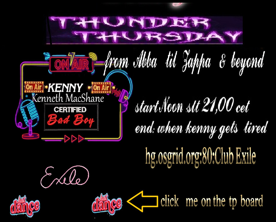 might flame ur shoes alittl bit of bikers rock will burn ur socks and if u s till dont run there will be dark-country and rockabilly for ur fun djay kenny spinning th tuns in th dsrt ara of club exile start 11 am slt and as allways openend 0 0 |