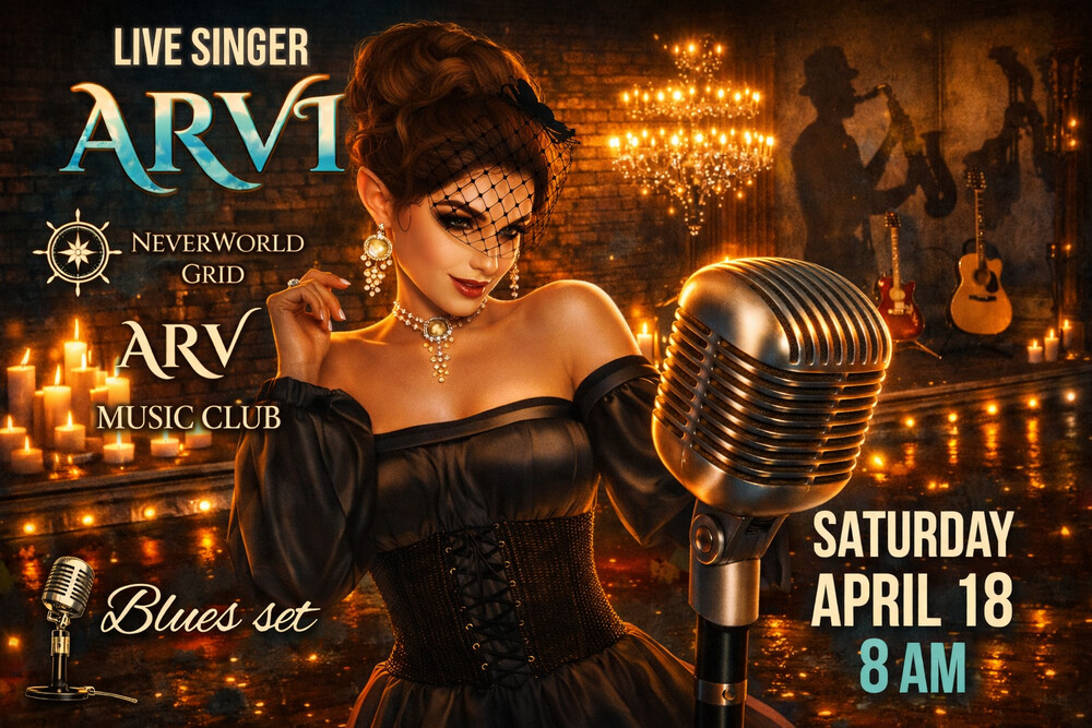 Step into a world of dim lights, slow rhythms, and deep emotion. ♫ Blues, soul, and smoky jazz tones ♫ Stories of love, heartbreak, and midnight roads ♫ Warm vocals and raw, expressive sound ♪ 1 Hour Live Set ✿ Where : hg.neverworldgrid.com:8002:ARV Music Club ✿ When: 8 AM ♪ Blues & soulful vibes ♪ Intimate, emotional, and powerful ♪ A night wrapped in rhythm and feeling Close your eyes, feel the groove, and let the blues take over. 0 0 |