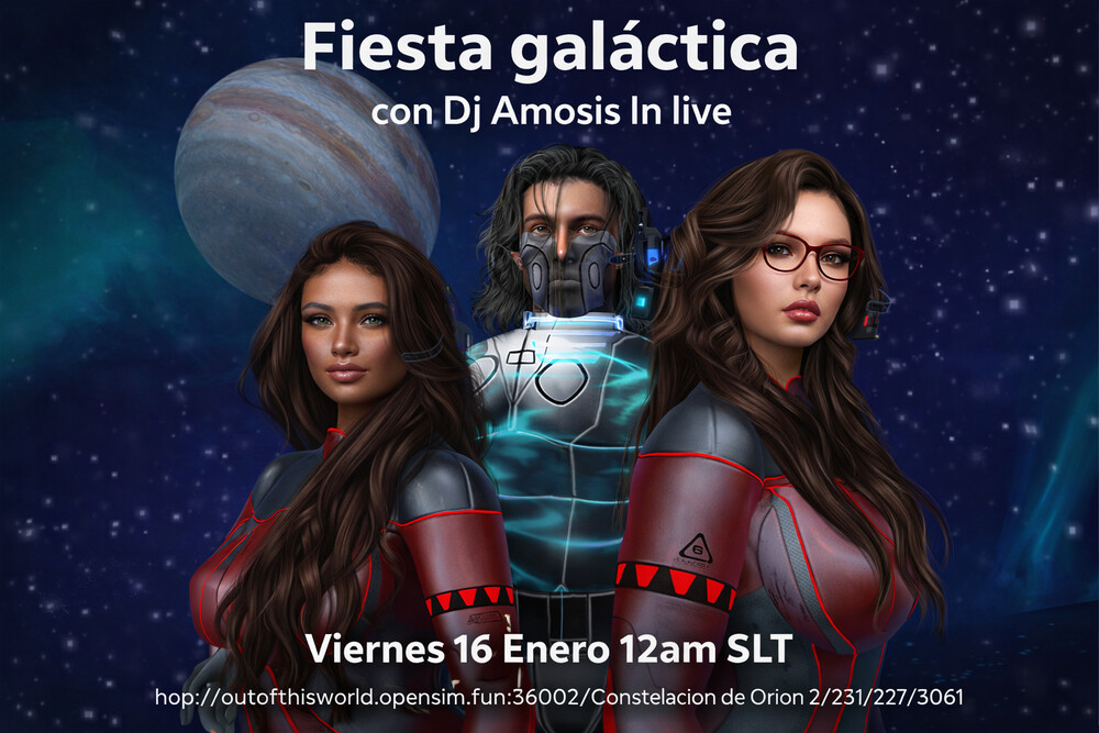 Dj Amosis Galactic PartyMundo Latino 2 months ago | 2026-01-14 12:00 SLTCome to the party in Orion Constellation 2 wearing your futuristic outfit. hop://outofthisworld.opensim.fun:36002/Constelacion%20de%20Orion%202/231/227/3061